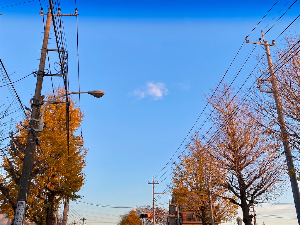 朝日に照らされるイチョウが輝いていた